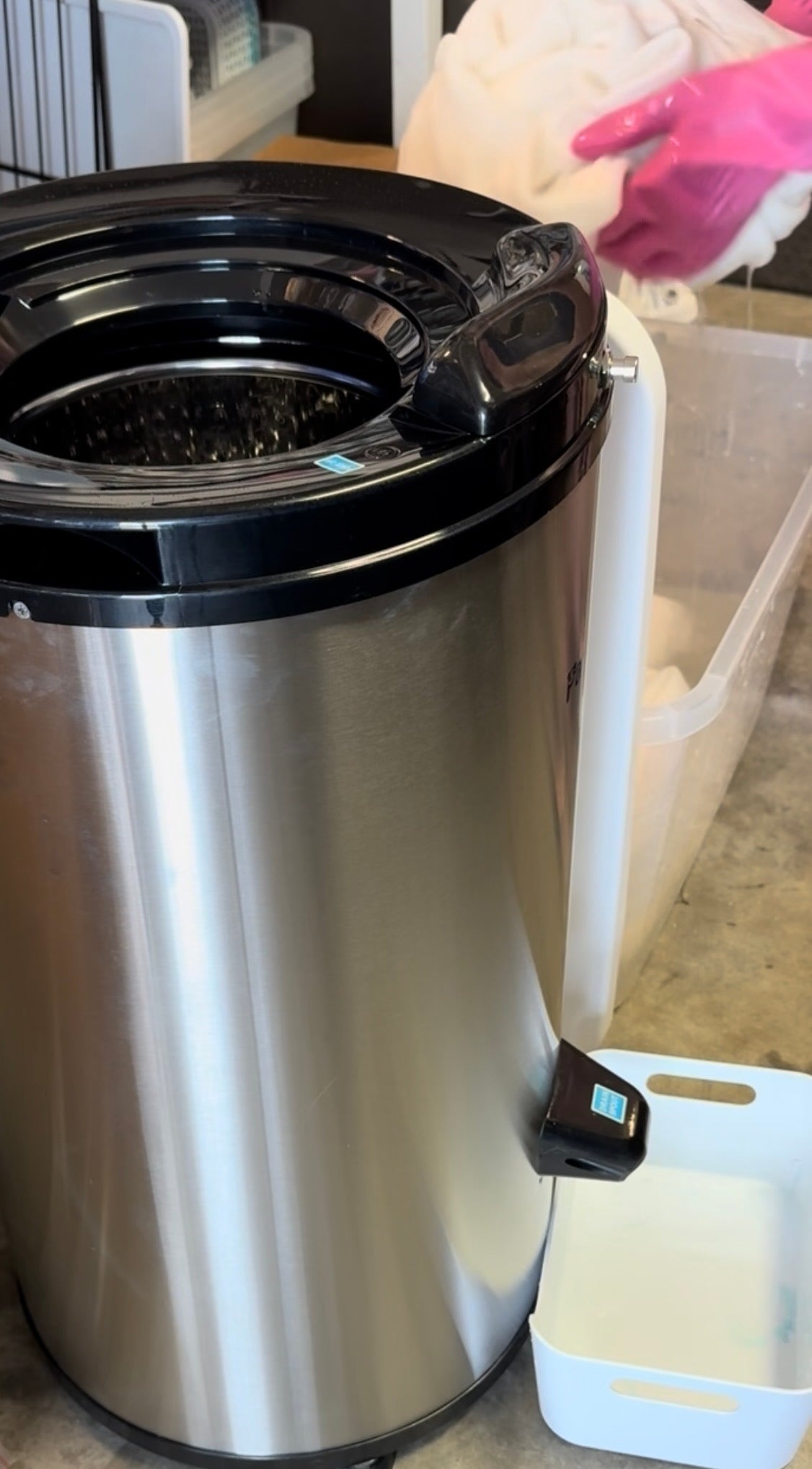 We remove excess moisture so the fabric is perfectly prepped for clean dye absorption.